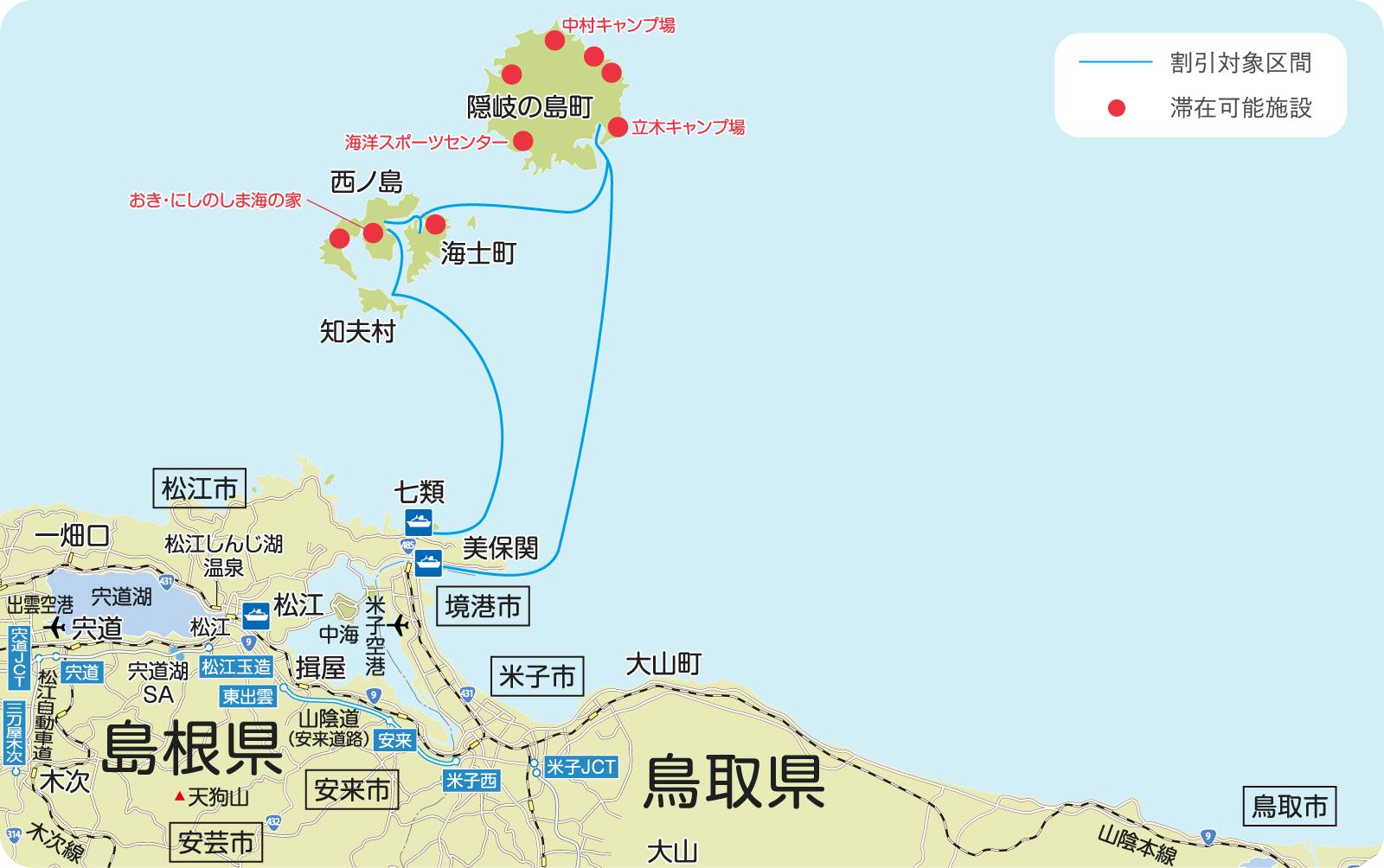 【本土~隠岐島間往復1回、また隠岐諸島間(4つの島)は何回でも利用可能】 | ||