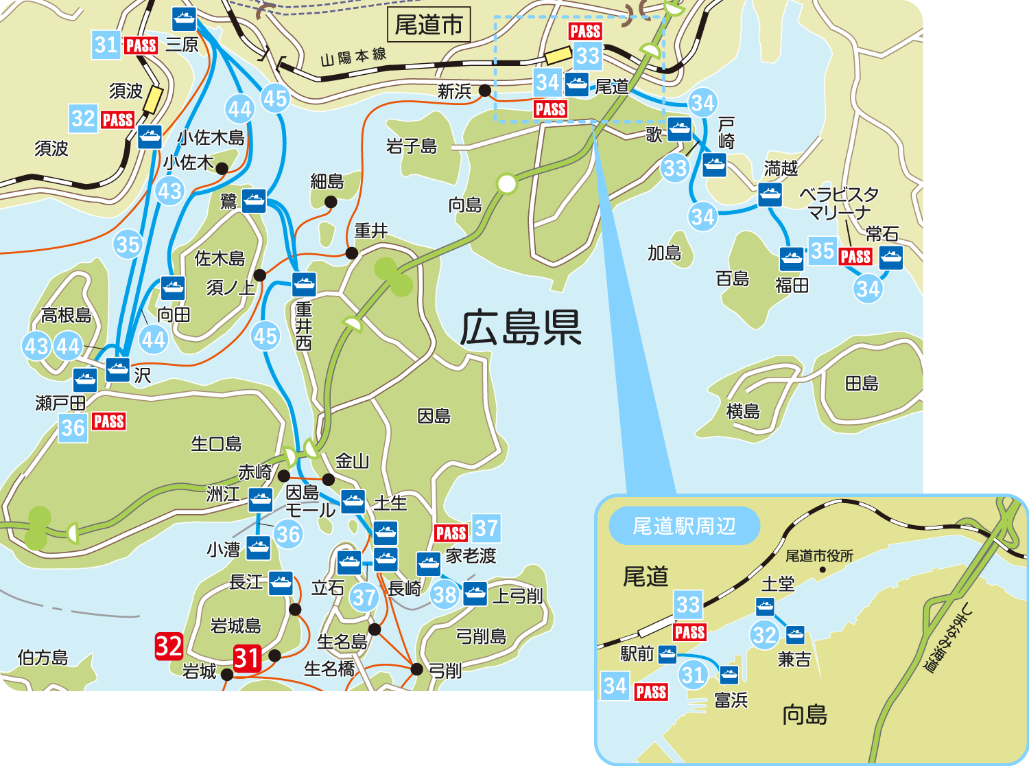 45 | 土生~三原 ※高速船 | 土生商船 | 0848-64-8527 |