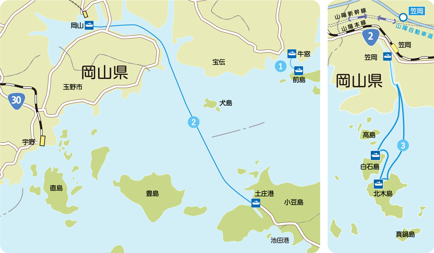 運航ルート・時間 運航ルート:笠岡~白石島~北木島(往復)
