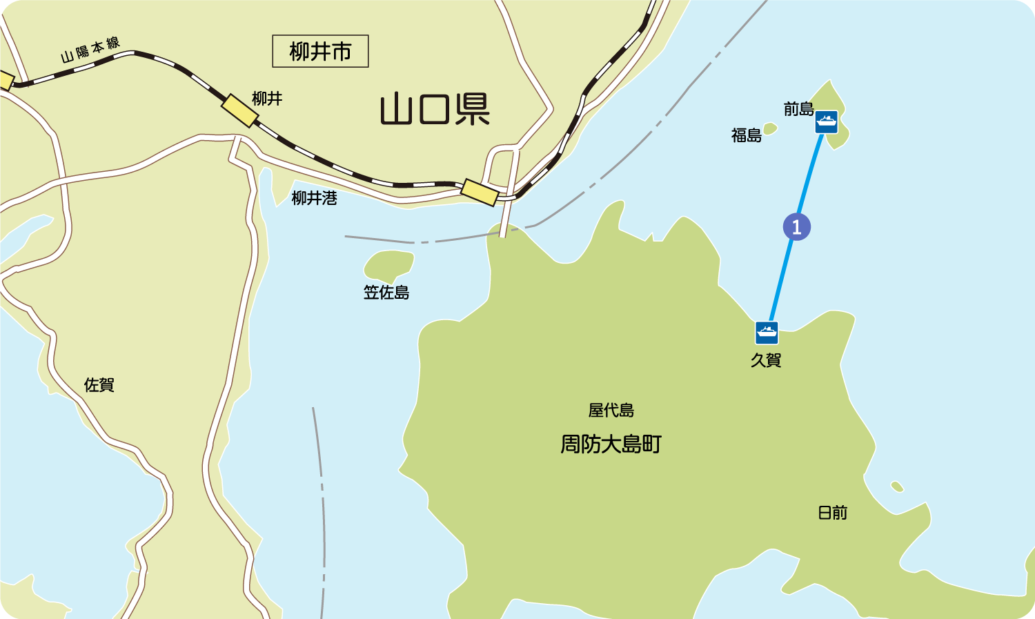 予約不要(先着順)のりば 久賀港:JR山陽本線大畠駅下車、